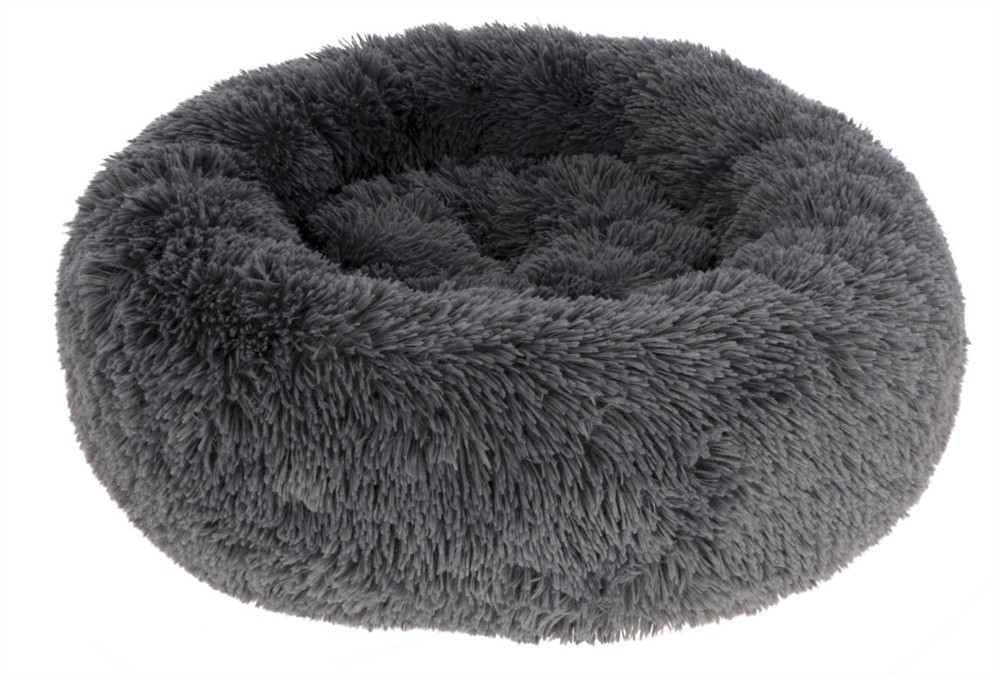 Med sin extra mjuka fyllning anpassar sig det fluffiga, munkformade mysbädden Fluffy för hundar och katter efter djurets kropp och erbjuder en bekväm och trygg viloplats.